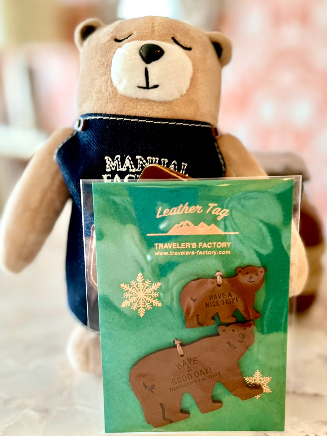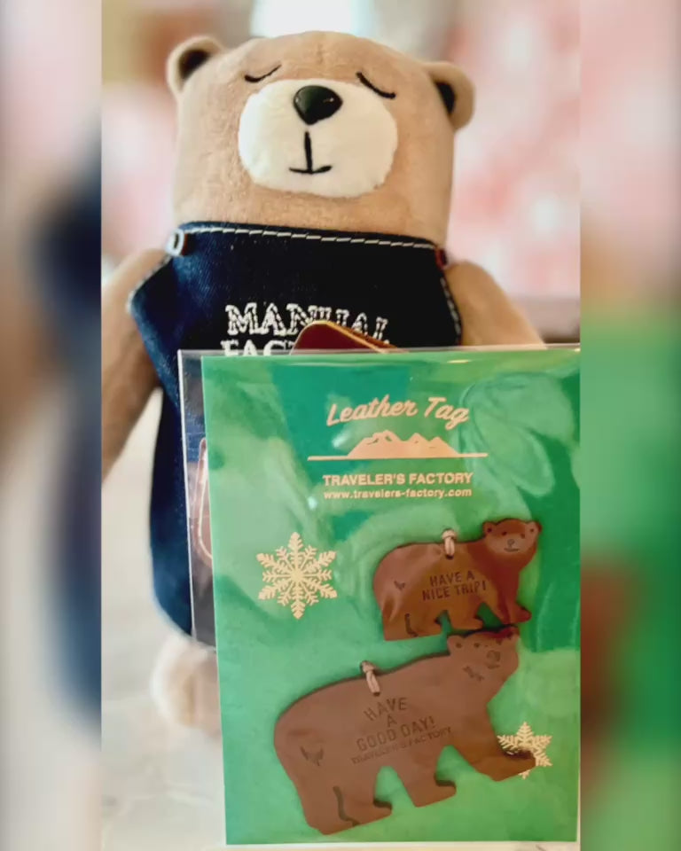 These tags are crafted in Chiang Mai, Thailand, using the leather from Traveler's Notebook. Sold as a set, these tags have made their way to you via a tropical route, giving them a sun-kissed camel hue🐻❄️Originally white bears, the leather from Traveler's Notebook ensures each one has a subtly unique color and texture. Embrace the individuality of each bear as their personalities shine through. With time and use, the color will evolve into a rich, nuanced patina.